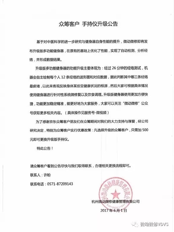 为了感谢京东众筹客户朋友们在众筹期间对我们的大力支持与厚爱,经公司研究决定,特别为众筹客户实行优惠政策:凡选择升级的众筹客户,只需加500元即可更换升级版手持仪。