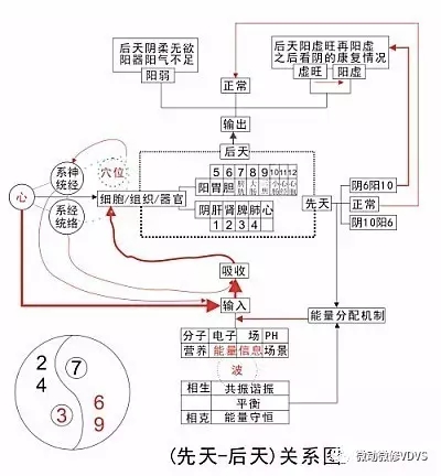 以下是结合心主神明即“心—12经络”微运动机制建立的一个关于亚健康的机理图。这张机理图帮助我们正确理解什么是先天,什么是后天;什么叫阳虚,什么叫阴虚;以及形成的基本原因: